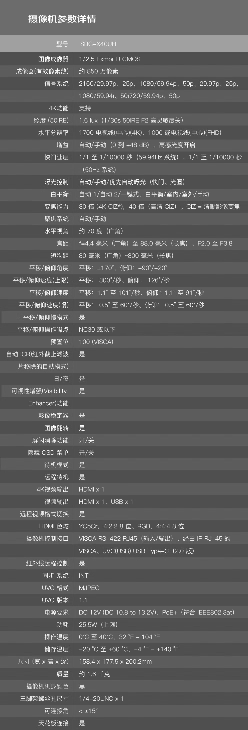SONY索尼 SRG-X40UH 视频会议摄像头会议摄像机4K高清HDMI接口 QY$15000 Price:¥